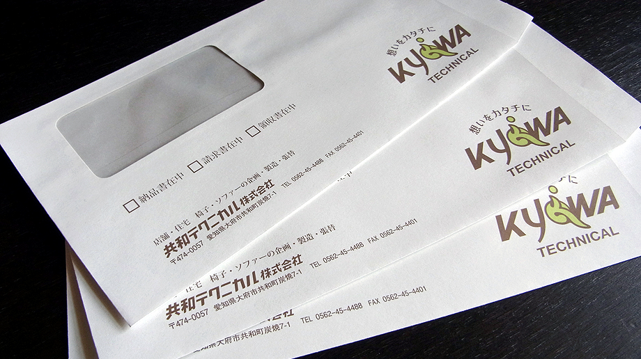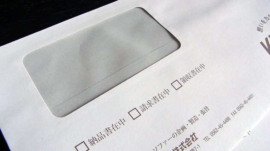 Product:長3窓付封筒 Paper:透けないホワイト Color:DIC指定色